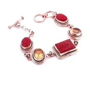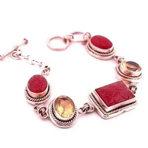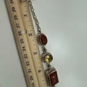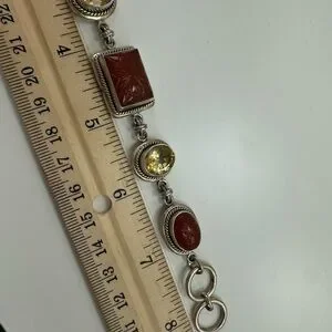 925 Sterling silver carved carnelian and faceted citrine bracelet 37.4g