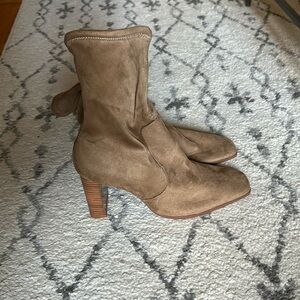NWT Zara taupe faux suede 3.5” heel socks ankle booties. Size 40/9