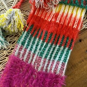 Anthropologie knit Pom Pom Christmas stocking
