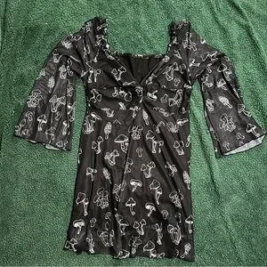 Black mushroom dress, breathable material, super cute and comfortable, wish I didn’t have to sell but I don’t have enough on top to fill it out, don’t be afraid to make an offer! 😊