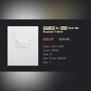 Never worn!! OFFLINE By Aerie Real Me Ruched T-Shirt in white size small. Fits snug, cropped, and is a stretchy athletic material, double layered so not see-through. Great quality!!