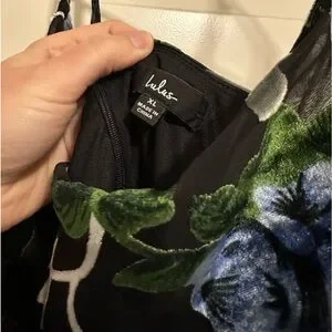 Brand new, never worn black chiffon Lulu’s dress with green, silvered and ashy blue florals details. Ordered for a wedding but was too big around my chest area. Tags were cut off prematurely due to me believing it was a good fit beforehand. Very prettyy dress but I could not return nor exchanged with tags cut off! OR BEST OFFER