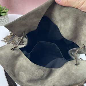 All Saints Cow Leather Gray Black Tassel Purse Bag Liberty Hobo Slouchy