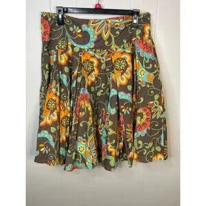 Vintage-Inspired New York & Company Floral Skirt 100% Cotton Size 12 Brown & Mul