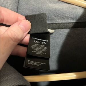 The North Face fleece in gray with Pink logo. In size XXL, the only imperfection is a small pull under the logo on the front. Worn 2 or 3 times great condition otherwise.