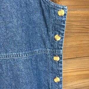 Jean jumper dress with embroidered cats and fall leaves.