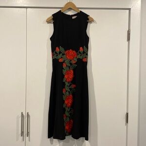 Traffic People sleeveless black knee length dress with roses