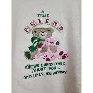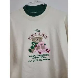 VTG 80s Womens A True Friend Teddy Bear Sweatshirt Medium Cream Pullover Grandma