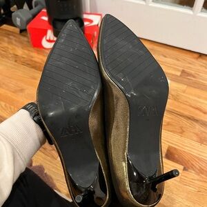 Gold Zara boots- NWT. Pull-on style with 2.5 inch heel approximately. No trades.