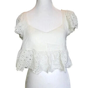 NWOT American Eagle Lace Eyelet White Crop Top Size Small
