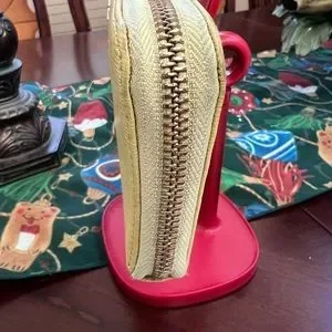 EUC Long size Furla wallet in leather. Has zipper closure. Has 2 compartment for card inserts and long bills and a middle zip closure for your coin. Preloved in good condition. Please review all pic photos as they are a part of it’s description before bidding or purchasing. Just a tiny stain in the interior, easy clean. Signs of use on corners, spa will turn this luxury wallet into brand new. Bid responsibly!