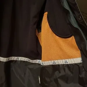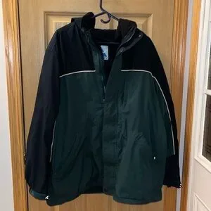 Awesome Gerry men’s hooded coat in a black and green combo. Outer coat can be worn as is or with the fleece lined separate jacket. The fleece jacket is also reversible so it can be worn alone 2 ways. Both pieces in excellent condition. Size XL. Multiple pockets and adjustable toggles at bottom. Heavy duty zippers.