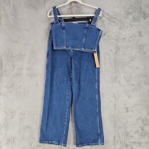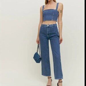 Reformation Sunny Denim Two Piece Set Womens Size 6 Blue Organic Cotton Crop NWT