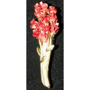 VINTAGE DMC97 BOUQUET OF RED ROSES Gold tone BROOCH