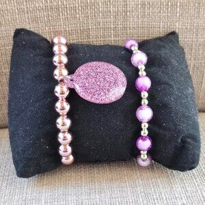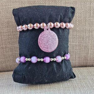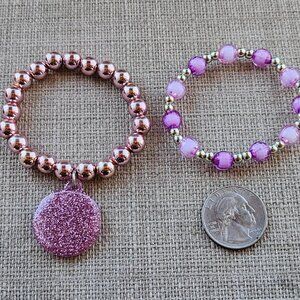 Girl Bracelet Set of 2 Purple and Gold Tone stretched Wrist Band Fashion Jewelry
