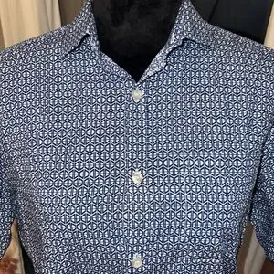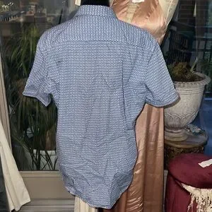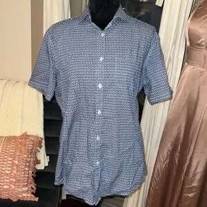 Murano blue mens shortsleeve button down collar business casual dress shirt MED