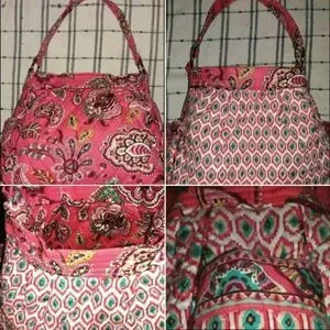 Vera Bradley retired pattern called "call me coral" hobo bag, has 2 pockets on the ends, reversible pattern inside and out, good condition, no rips/tears/stains, handle is in great shape