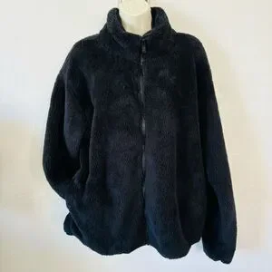 Victoria’s Secret PINK Black Sherpa NWT full zip soft teddy jacket mock neck pockets size L Msrp $70