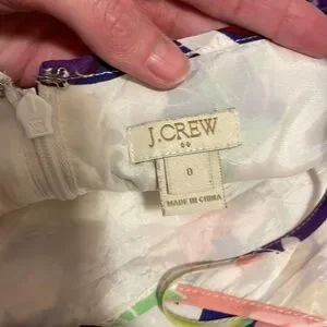 Picturing 43841 Spaghetti Strap Dress from J. Crew in Fun Multi Colors, Size 0, Fitted Bodice, Lined, Side Pockets