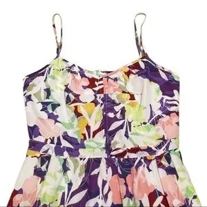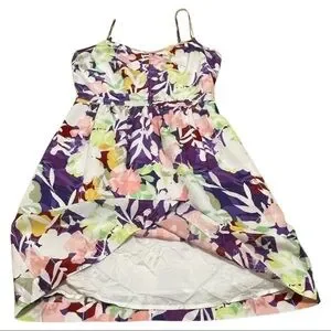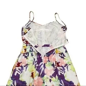 J Crew Dress Women's 0 White Pink Purple Spaghetti Strap Floral Mini Bright Fun