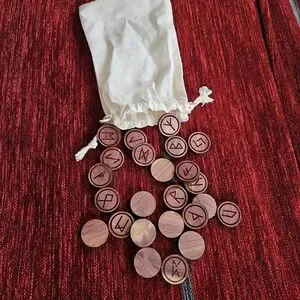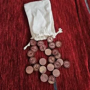 The runes are burned in and will never fade. Comes in a natural cotton bag. Each is approximately 3/4 inch, around the size of a nickel. Thick and quality wood.