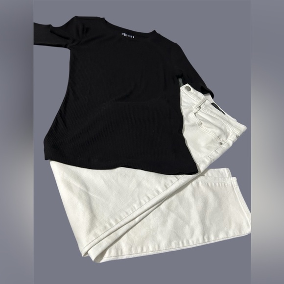 Curve-hugging skinny jeans cut from clean, optic-white stretch denim make a versatile base for your casual look.