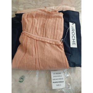 NWT St Roche Dream Maxi Halter Dress Pink Black Cotton/Silk Hand Dyed Sz 2 $485