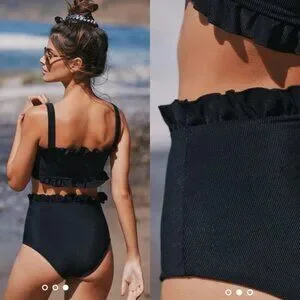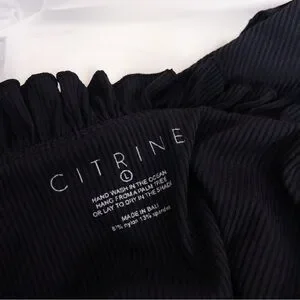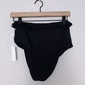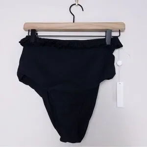 NEW Citrine x Anthropologie Alice Ruffle High Waist Ribbed Bikini Bottom L Black