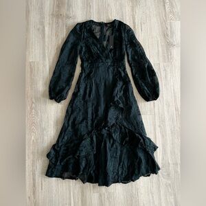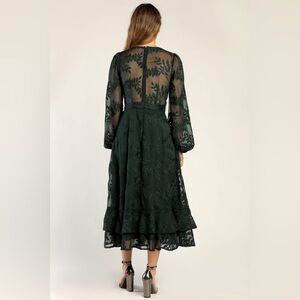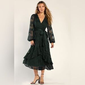 NWT Lulus Spectacular Feeling Emerald Embroidered Faux Wrap Midi Dress - Small