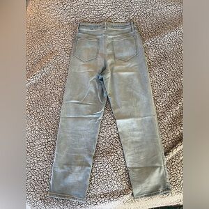 High waisted, light wash, straight leg jean