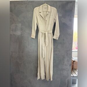 Beautiful full length jumpsuit from AYR ‘The Neo’ features long sleeves and pant, belt and front zip at waist and hidden buttons up front, side pockets, back and front pockets. Medium weight twill woven fabric 100% Lyocell.