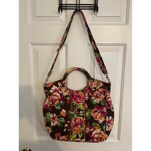 Vera Bradley English Rose Pattern Two-Way Tote Handbag Brown Pink Peach & Green