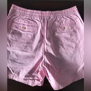 Size is small. Color is pink. Made in Sri Lanka. Stretch classic fit