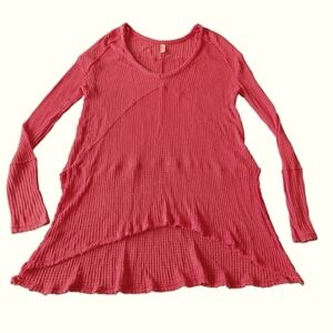 Free People Sunset Park coral v-neck tunic length waffle knit thermal top size S