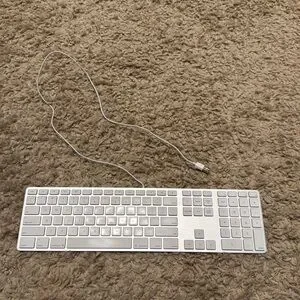 Used Apple Wired Keyboard - silver, white. Good used condition - no box. Purchased from Apple Store. Also has 2 spots on side to plug in flash drive.