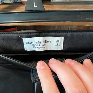 EUC Abercrombie & Fitch women’s The 90’s straight Ultra high rise pants size 28/6. These pants are amazing! Faux leather, black in colors classic 5 pocket pants. Pairs perfect with heels! Check photos for measurements in inches!