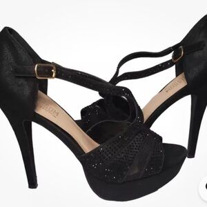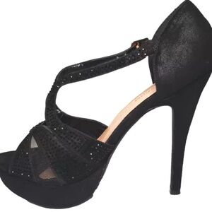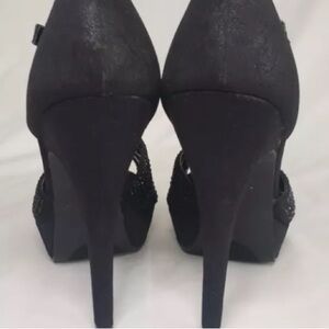 De Blossom Collection Women's Suede Black 5" Stiletto Rhinestone Shoes Size 6.5