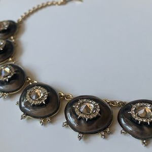 Luxe Crystal Studded Satin Silk Lucite Spiked Starburst Necklace in neutral, earthy tones.