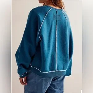 Free People We The Free Midnight Pullover, Blue Combo, Size XL