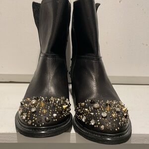 🥾Zara Black Leather Studded, Rhinestone Boots