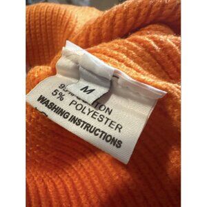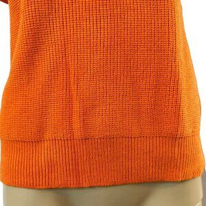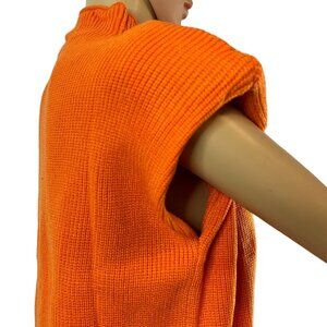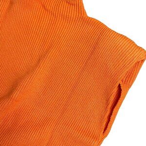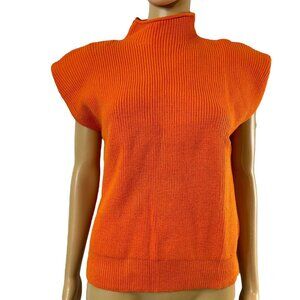 Women Sweater Shoulder Pad Knit Vest Medium Orange High Neck Cotton Top Knit