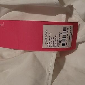 Lilly Pulitzer Emie babydoll Ruffle Top Neon pink, Blue & White Size 10 NWT