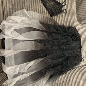 This Sparkly piece is lined and stacked with tulle. Brand new without tags. Perfect for Holiday cocktail party or prom/ winter formal.