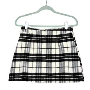 Forever 21 Plaid Check Wool Mini Skirt Size Medium Black White Academia Preppy