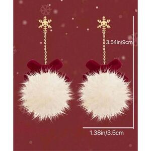 Holiday Christmas Vegan Fur Russian Core Tassel Drop Snowflake Red Velvet Bow Earrings