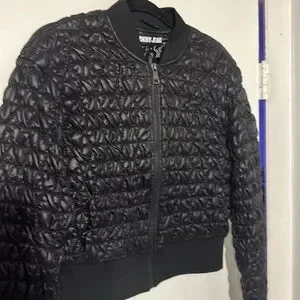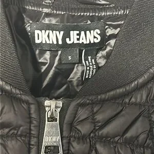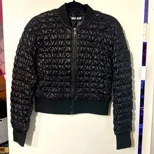 NWOT. Woman’s DKNY Jeans black cropped puffer jacket. Size S.