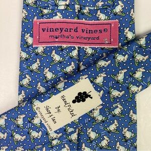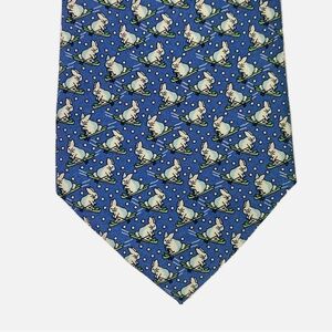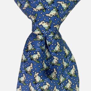 Vineyard Vines Neck Tie Bunny Rabbit Skiing Blue Silk Made in USA Men's 3.75"
