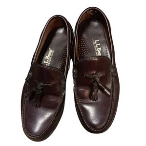 L.L. BEAN MEN'S SIZE 7 BROWN LEATHER LOAFERS WITH TASSELS.