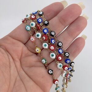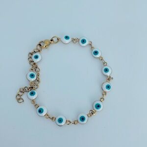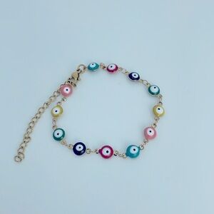 Evil Eye Stainless Steel 18k Gold Plated Adjustable Length Bracelet