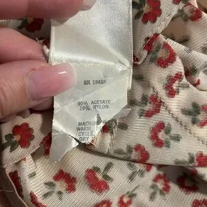 GUC considering age!! Amazing example of 70s fashion. Zipper back and tie waist. Estimate it fits a 2/4 or small but look at measurements. Red trim has a few issues and seam in shoulder has separated slightly in one area. All easy fixes.